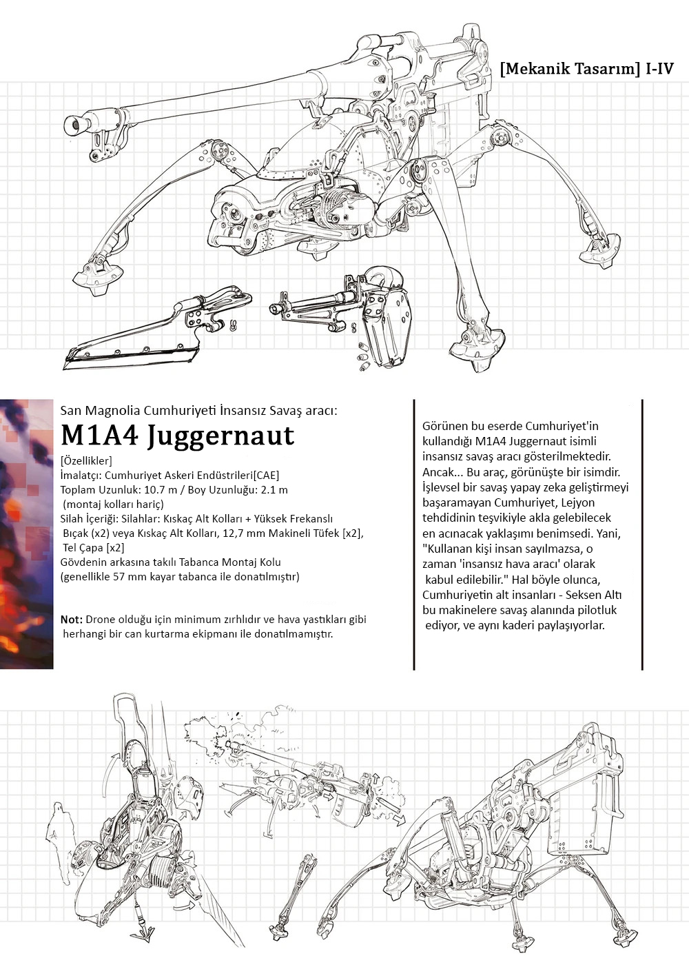Silüeti sinsi sinsi gezinen bir örümceğe benziyordu ama dört ayaklı yapısı ve sırtındaki top onu bir akrebe benzetiyordu. Kafa sayılabilecek herhangi bir şeye sahip olmayan şekli, savaş alanında kayıp tacını arayan başı kesilmiş bir iskelet cesedini andırıyordu. Havaya tek bir nefes vererek, alacakaranlık rüzgarına karşı soğuyan zırhlı gövdeye yaslandı ve bakışlarını gün batımındaki gökyüzünün ürkütücü parlaklığına çevirdi.