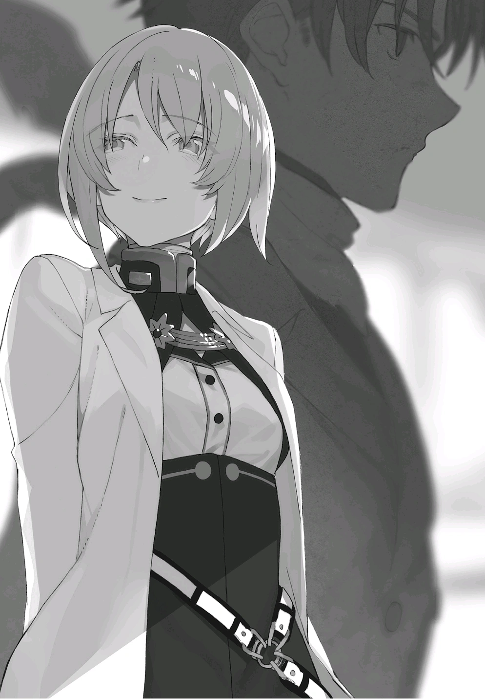 Tüm çatışmaları durduran Shiden’ın Brísingamen filosu terk edilmiş bir asansör salonuna sığındı ve sistemlerini kapattı. Tek eliyle askeri giysisini çıkaran Shiden, kokpitin saklama bölmesini karıştırdı.