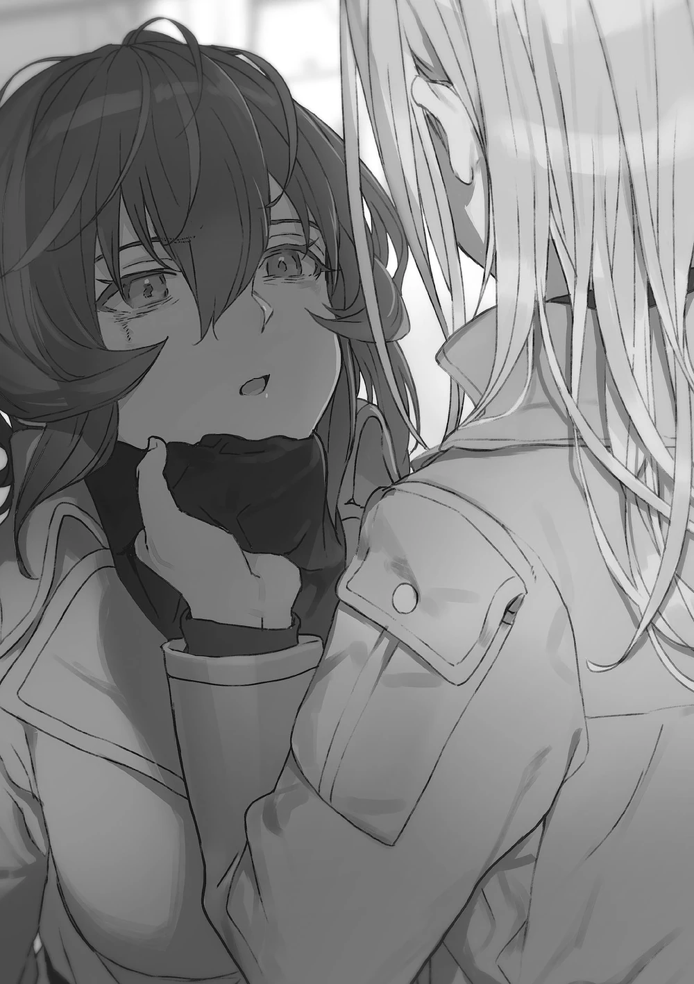 İki elini yara izinin üzerinde gezdirdi ve parmak uçlarında durarak dudaklarını onunkilere yaklaştırdı. Her zaman üniformasının yakasıyla gizlediği yara izine dokunmasına rağmen Shin onu reddetmedi. Bunun yerine, dünyadaki tüm incelikle ellerini onun beline doladı ve onu daha da yakınına çekti.